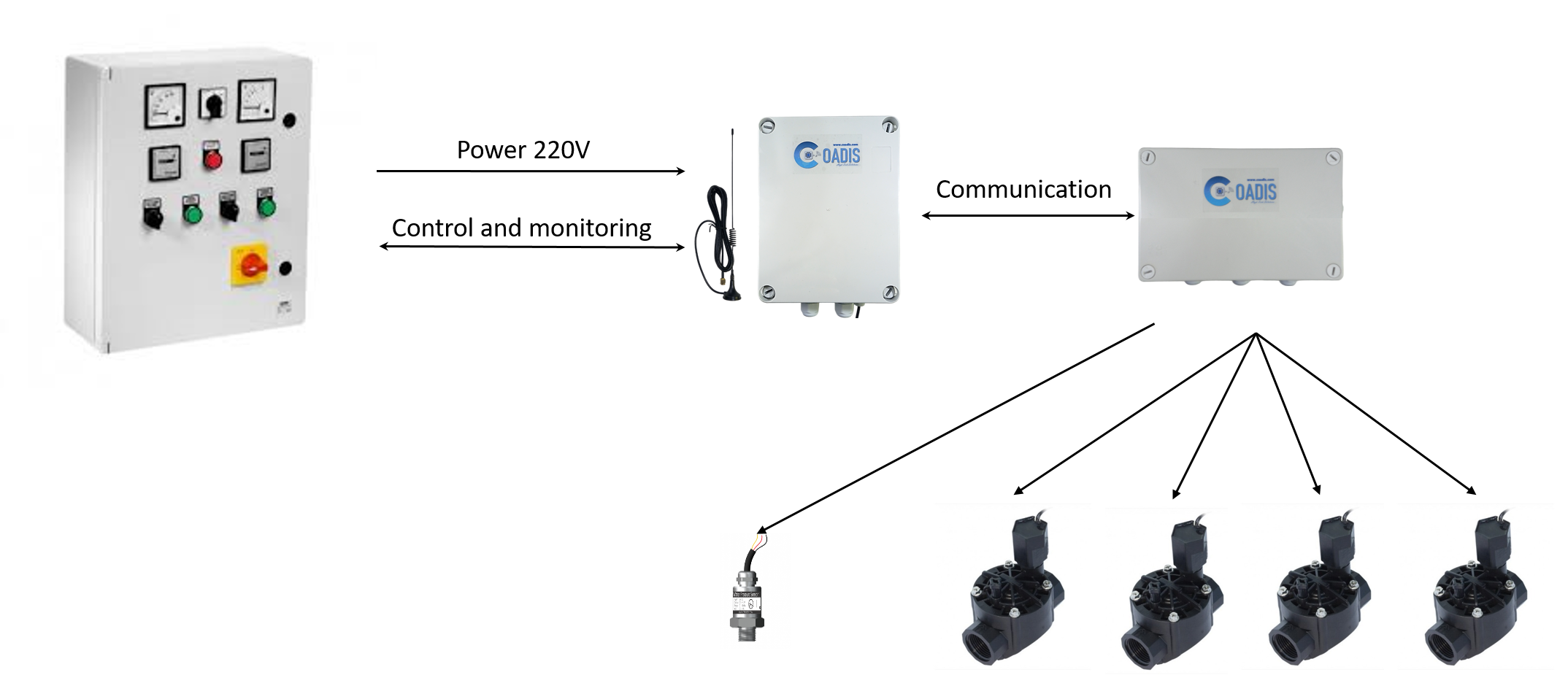 COADIS MV est une solution efficace pour le contrôle et la surveillance à distance de l'irrigation basée sur le réseau d'électricité (pompes + électrovannes). Elle se compose de deux appareils et d'une application Mobile et Web.